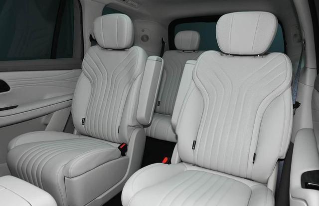 二排头等舱体验: 独立航空座椅一键躺平,通风、加热、按摩功能一应俱全。中央通道宽度远超同级,第三排进出无需狼狈“钻爬”。